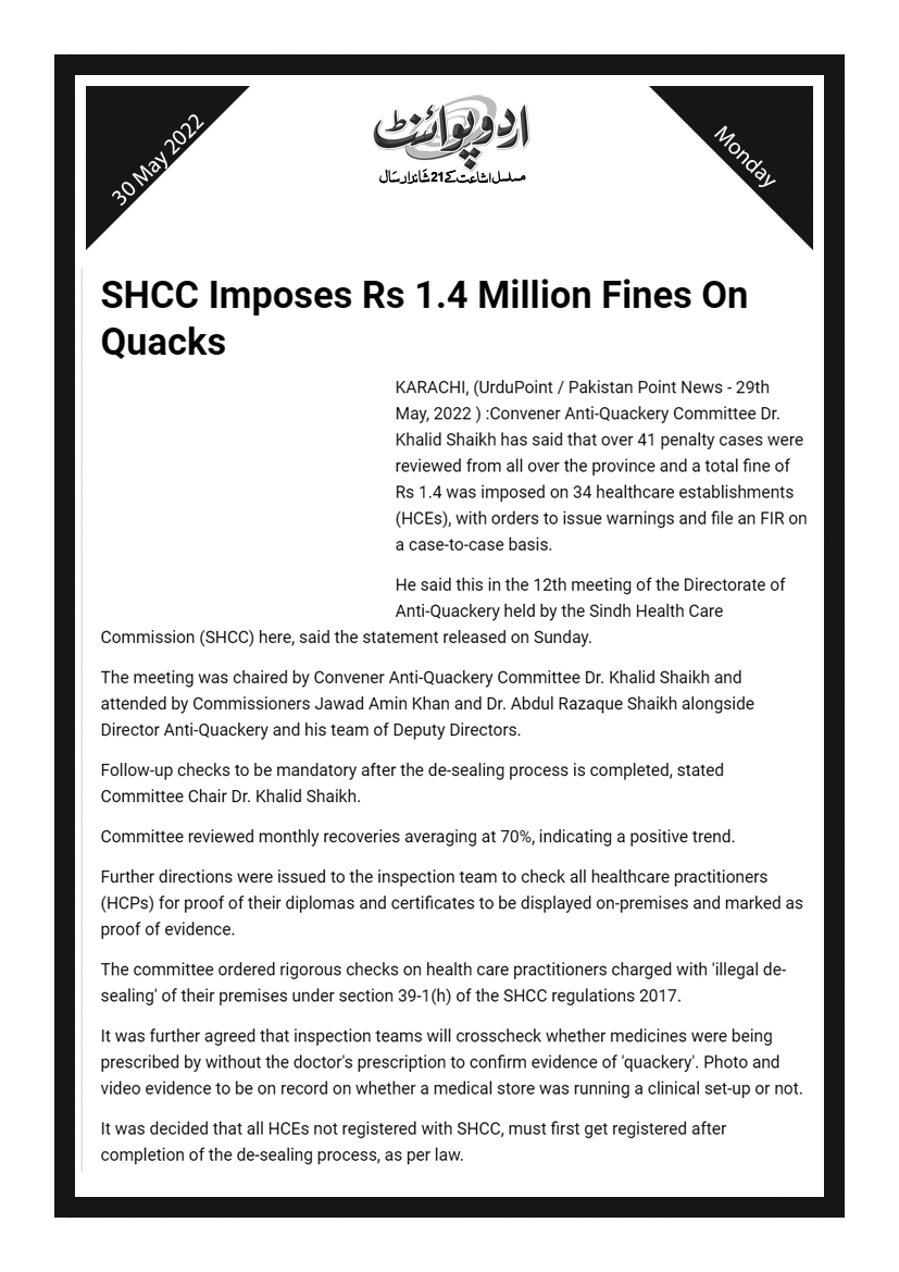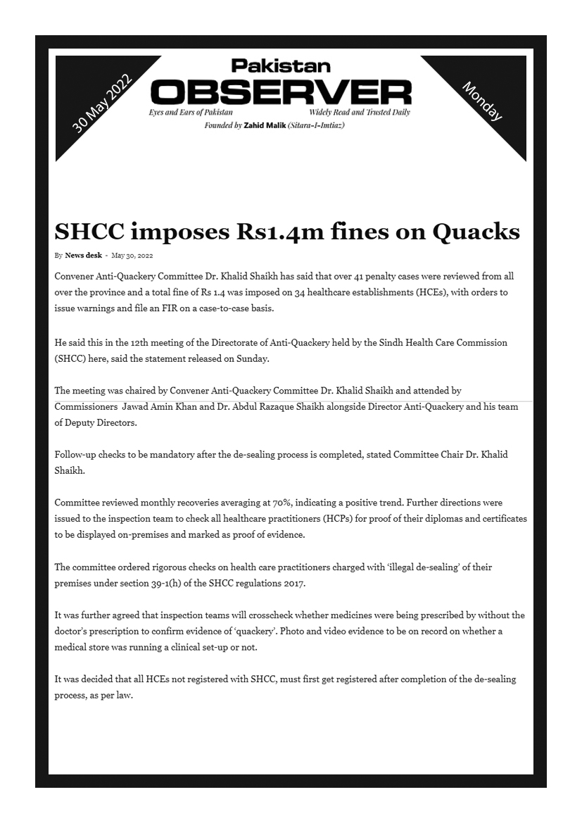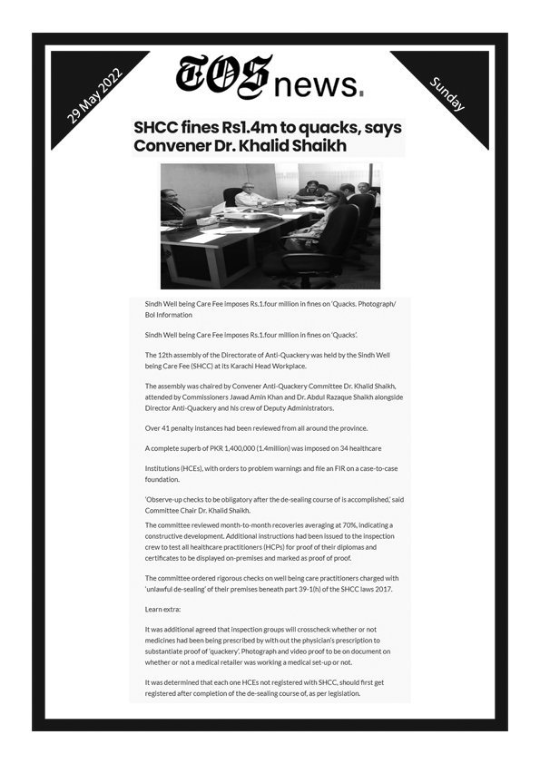SHCC to introduce online system for registration and complaints, Dr. Khalid Shaikh, Chairman SHCC – Voice of Sindh 10 January, 2025