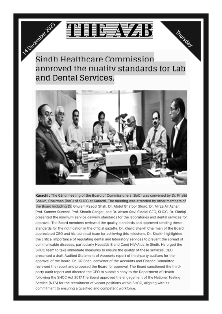 SHCC to introduce online system for registration and complaints, Dr. Khalid Shaikh, Chairman SHCC – Voice of Sindh 10 January, 2025