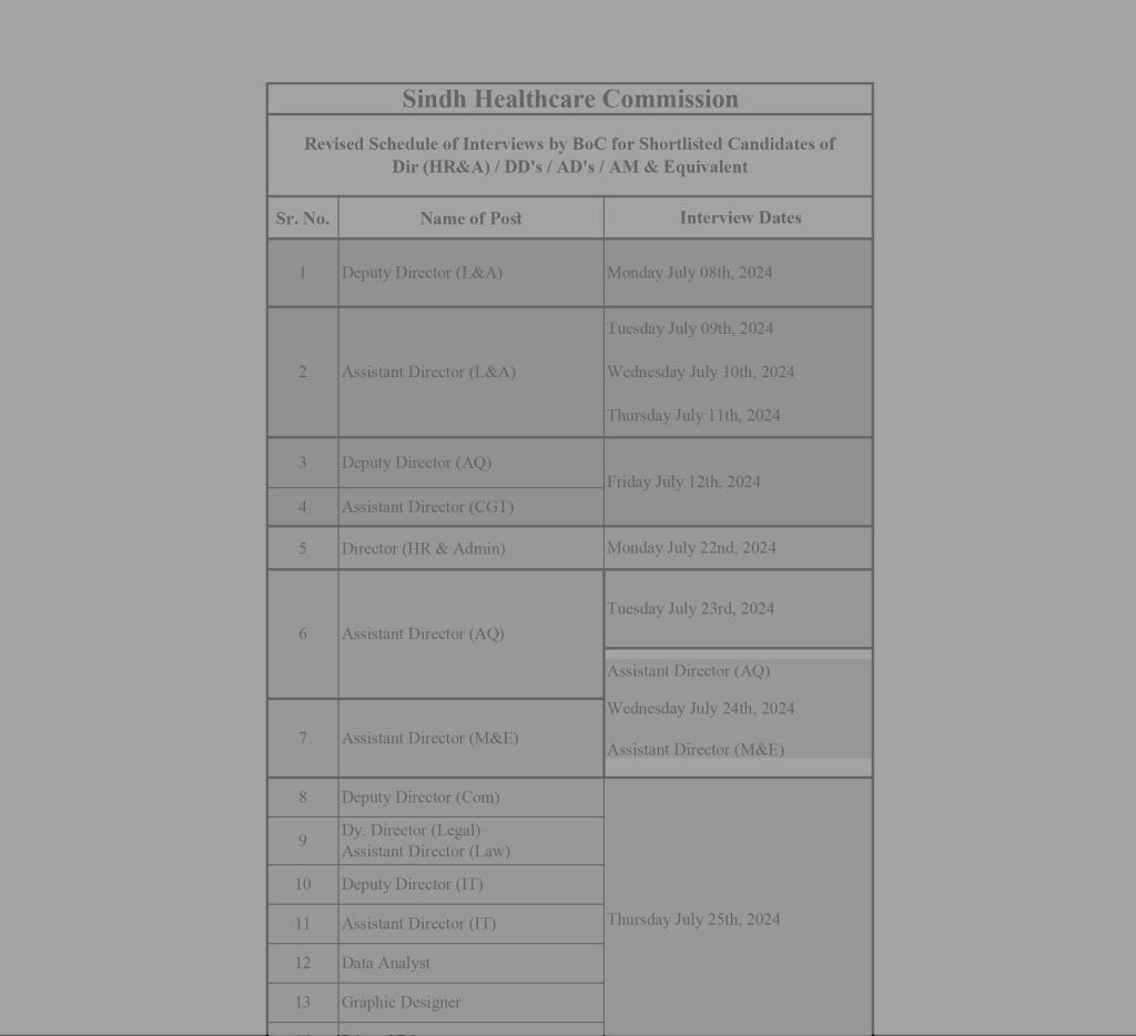 throughout the province of Sindh and to ensure the quality of healthcare service.