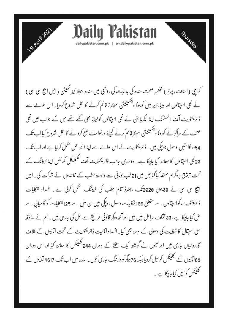 Daily Pakistan 1st April 2021