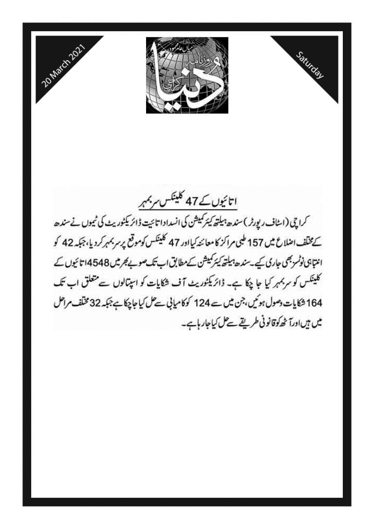 Dunya Newspaper 20 March 2021