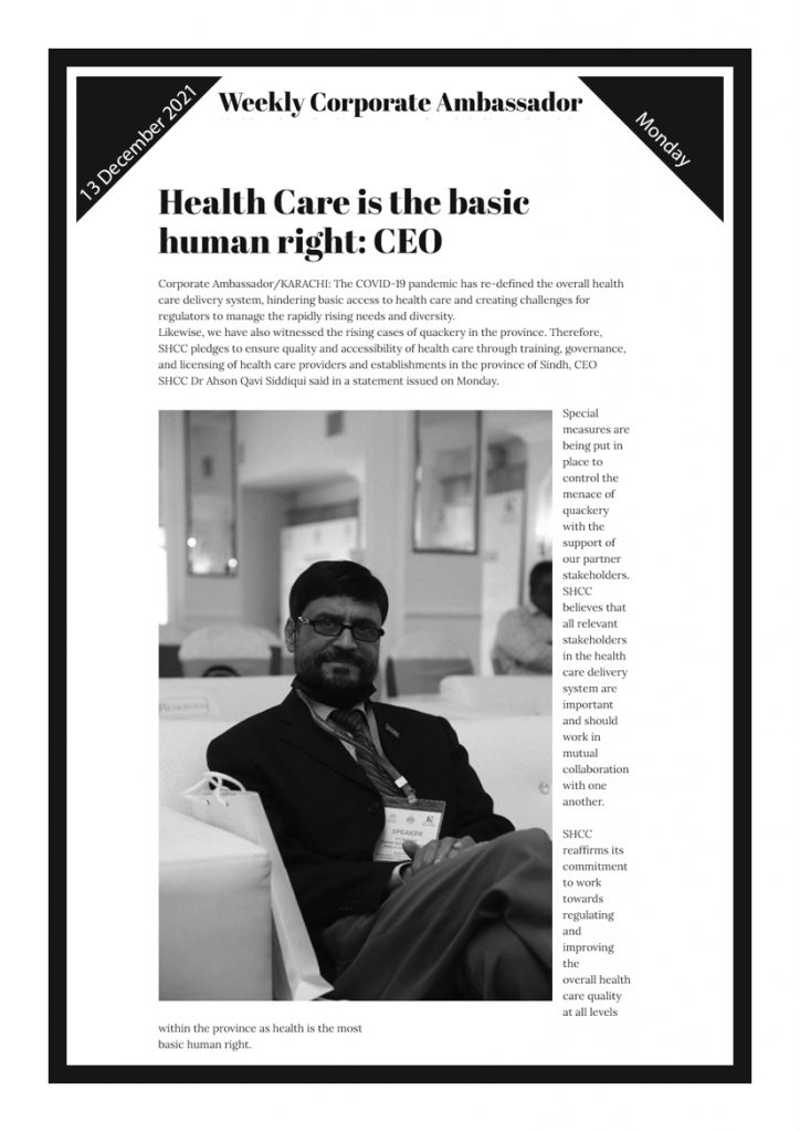 SHCC to introduce online system for registration and complaints, Dr. Khalid Shaikh, Chairman SHCC – Voice of Sindh 10 January, 2025
